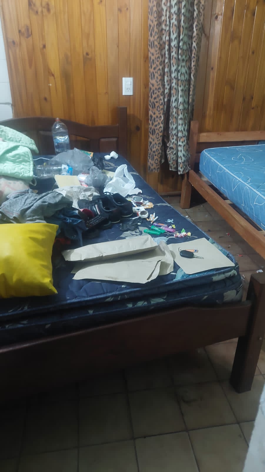 En la requisa policial se pudo observar la presencia de dos envoltorios de nylon con cocaína, según pudo constatar personal de Drogas Peligrosas. Además, se secuestraron una pipa de fabricación casera, una cuchara, botellas de bebidas alcohólicas, restos de blíster de Viagra, dinero en efectivo y un automóvil.