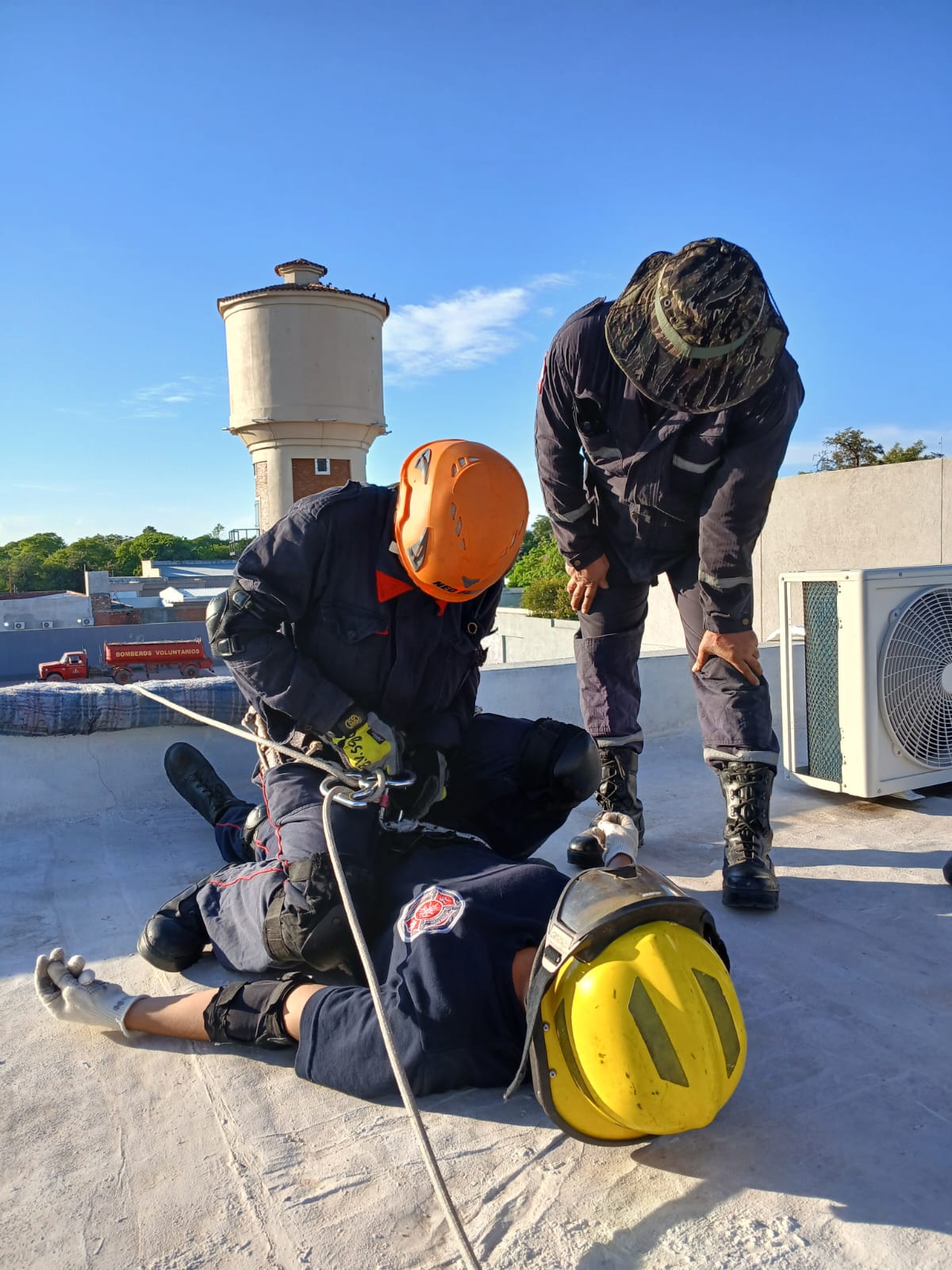Este sábado por la mañana, los bomberos voluntarios de Santiago del Estero Capital llevaron a cabo un simulacro de rescate en altura, en el que se practicó el descenso de una víctima desde una cornisa ubicada a 12 metros de altura. La actividad formó parte de su plan de capacitación continua, con el objetivo de optimizar sus habilidades y respuesta ante emergencias reales.