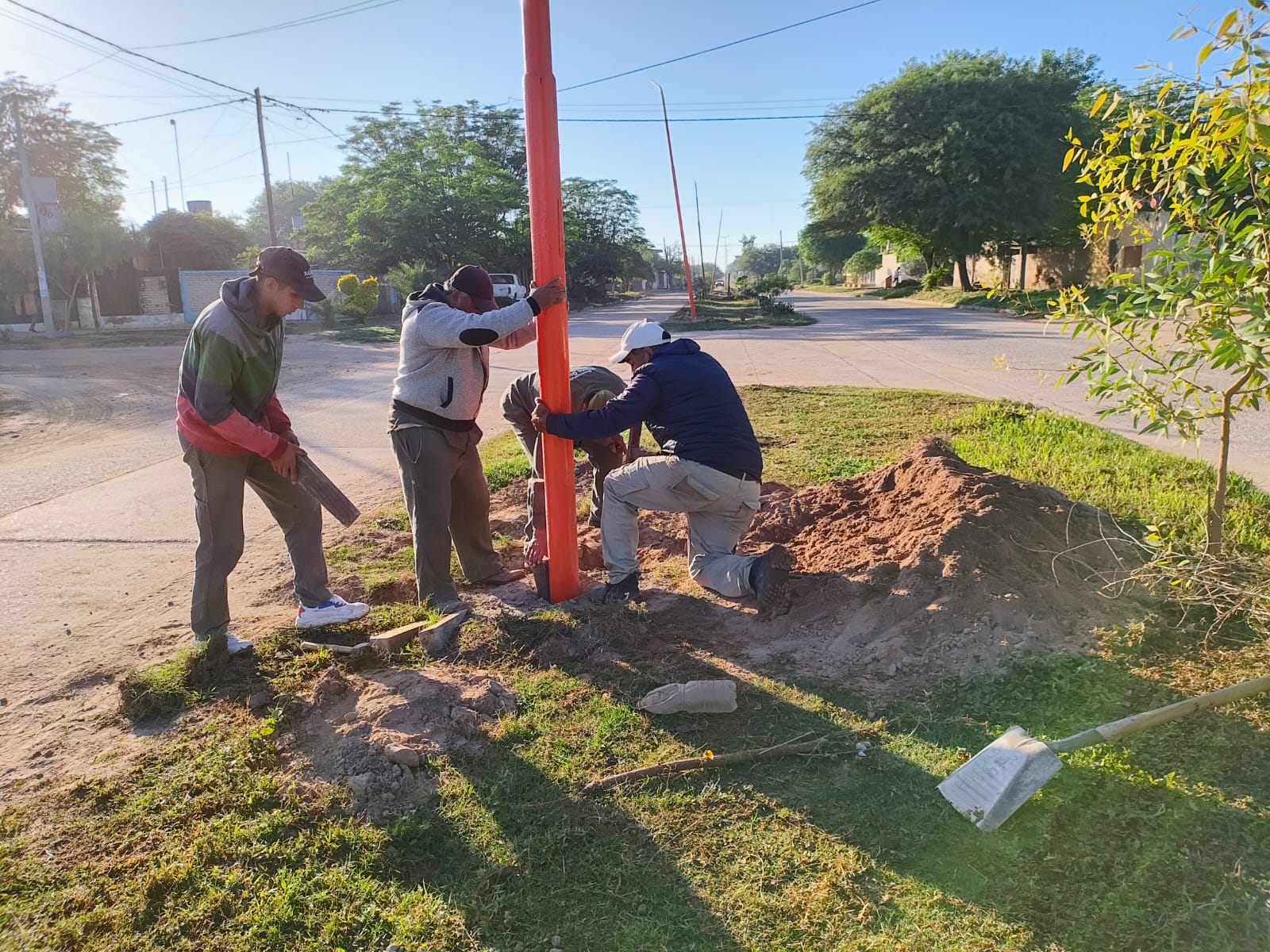 El personal de Obras y Servicios Públicos de la Municipalidad de Monte Quemado inició hoy las tareas de instalación de la infraestructura correspondiente al nuevo alumbrado público sobre Avenida Perón, en el tramo comprendido entre las calles Congreso y Rivadavia.