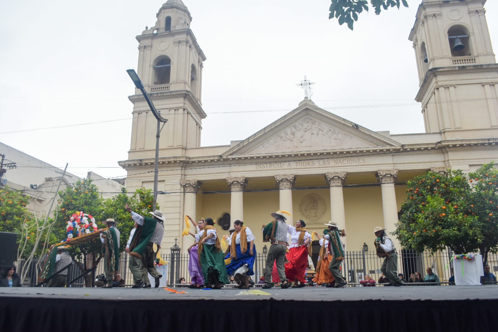 En el escenario montado al frente de la Catedral Basílica se desplegó un espectáculo de baile, música y color. El evento único fusionó música, danza y espiritualidad, bajo la impecable interpretación del Ballet Folclórico Jorge Newbery.