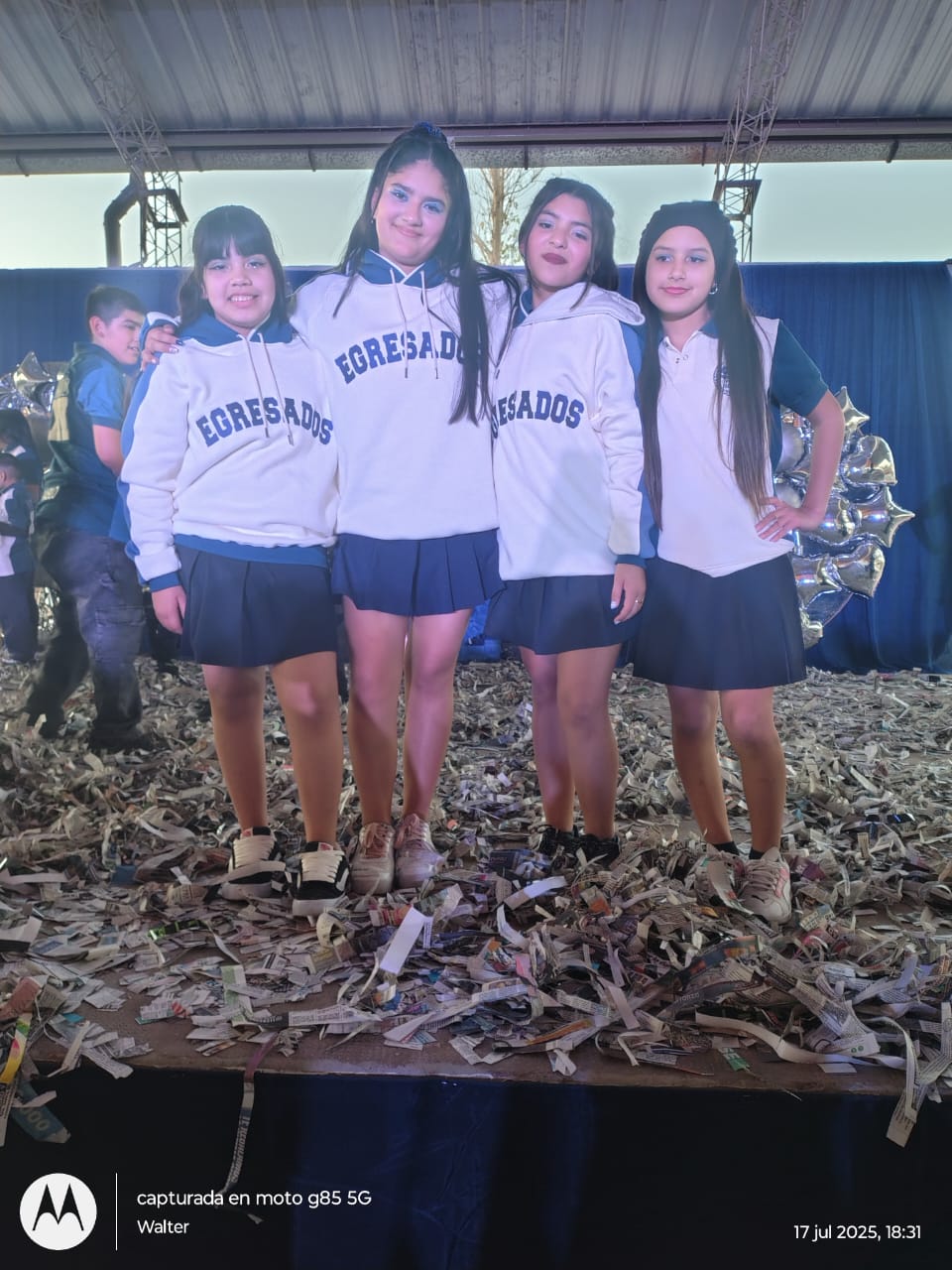 Estudiantes de 7° “D” del Turno Tarde de la escuela N° 913, “Pedro E. Giachino” de Campo Gallo, presentaron sus buzos y chombas de egresados 2025.