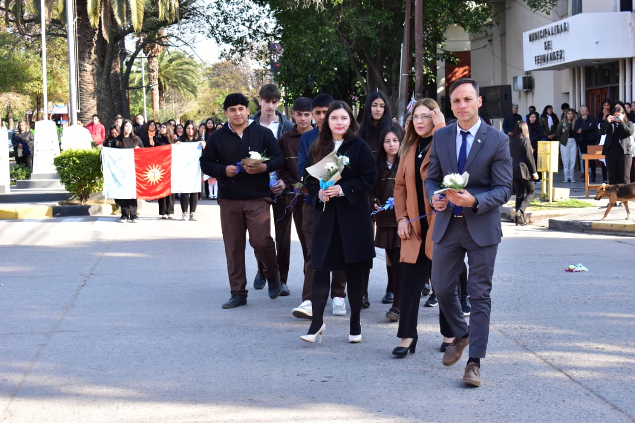 Organizado por el Instituto Nuestra Señora del Rosario y la Municipalidad de la ciudad de Fernández, este lunes en horas de la mañana, al cumplirse 175 años de su fallecimiento, se realizó el acto en homenaje al General Don José de San Martín. El mismo tuvo lugar en la emblemática intersección de las calles 9 de julio y San Martín, donde se encuentra ubicado el busto del prócer padre de la patria.