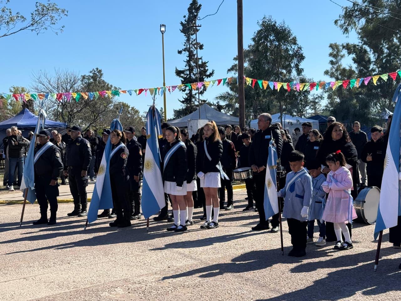 Por su parte, Sosa transmitió los saludos del Gobernador Zamora y del Jefe de Gabinete, Elías Suarez. El acto prosiguió con la colocación de una ofrenda floral en honor a su fundador y el canto del feliz cumpleaños junto a la Banda de Música y toda la comunidad.