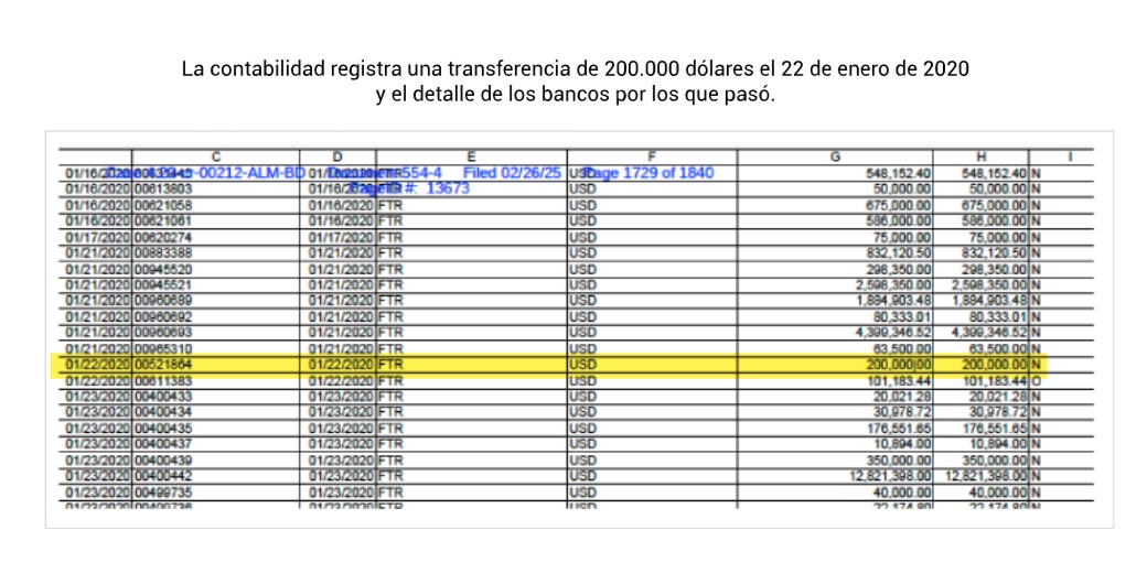El archivo, detalló la periodista, permite rastrear los movimientos de la operación: “Tiene muchos detalles, como todos los bancos por los que pasó el dinero”.
