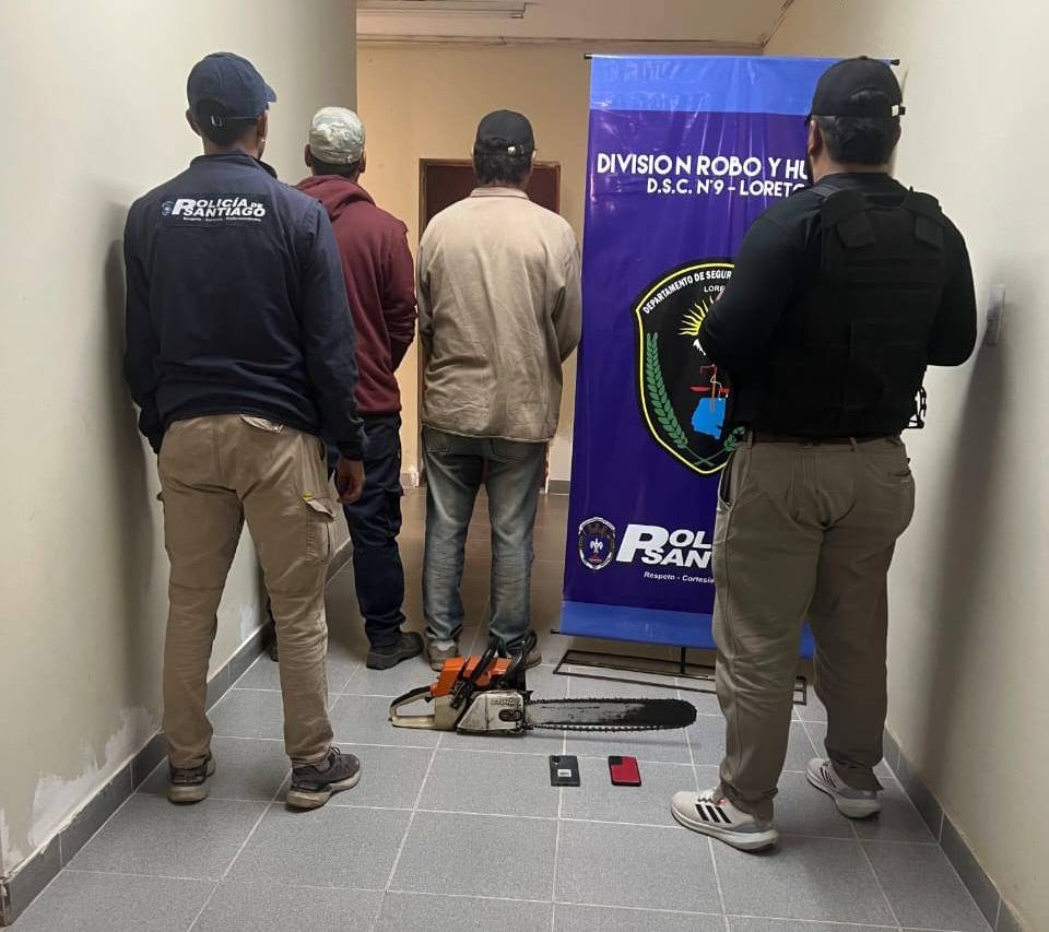 Con los datos reunidos, se solicitaron las medidas judiciales correspondientes, concretándose un allanamiento en un aserradero de la ciudad de Loreto. Durante el procedimiento, los investigadores detuvieron a dos hombres, de 59 y 31 años, respectivamente, y secuestraron 23 vigas de algarrobo blanco, un camión Ford modelo 600, una motosierra Stihl MS 381 y dos teléfonos celulares.