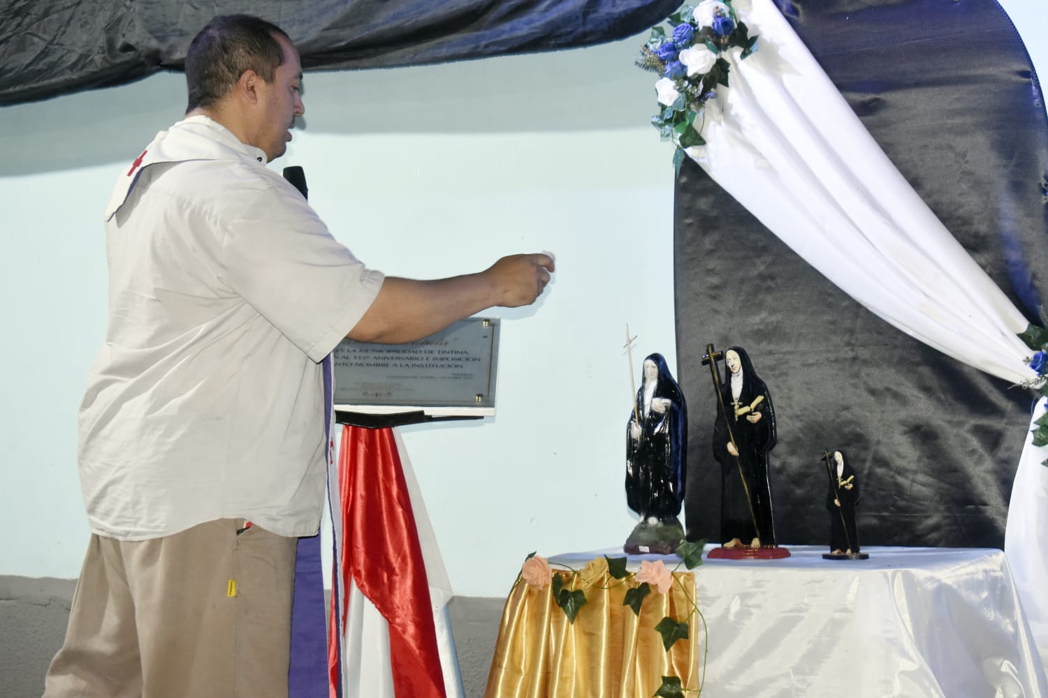 El acto se llevó a cabo en el ingreso de la comunidad educativa con presencia de su director, Sergio Carabajal, el intendente de Tintina, Dr. Mario Cantoni, autoridades de otras escuelas, colegios y el IFD, como también del hospital y el párroco, padre Ezequiel Ruiz.