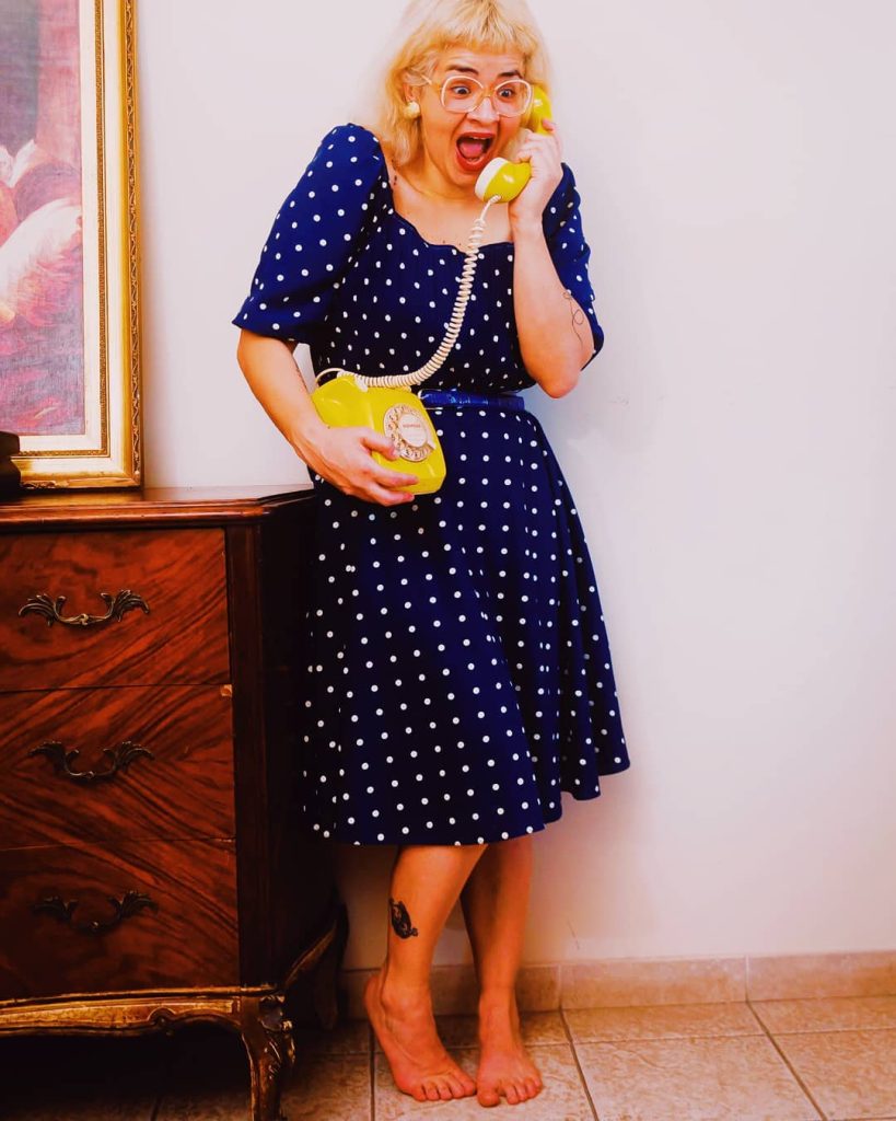 “Eso usaba mi abuela es como mi amor, como un hijo, por así decirlo. Es mi marca de indumentaria, que tiene casi veinte años, y la impronta que tiene es muy vintage, muy retro, y eso la hace única: los diseños coloridos, los lunares, los cuadros, las flores. Ropa para todo tipo de mujer. Hoy tenemos que animarnos sin pensar en el tipo de cuerpo que tenemos y ponernos lo que nos gusta. Salir a la calle y decir: tengo un vestido de lunares y soy única e irrepetible”.