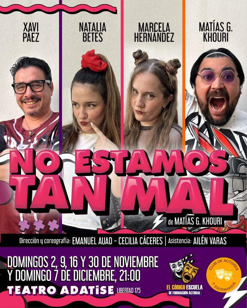 El próximo domingo 2 de noviembre sube a escena “No estamos tan mal”, una divertida comedia escrita por Matías Gabriel Khouri que invita al público a reír, emocionarse y, sobre todo, reconocerse en esos vínculos que nos acompañan a lo largo del tiempo.