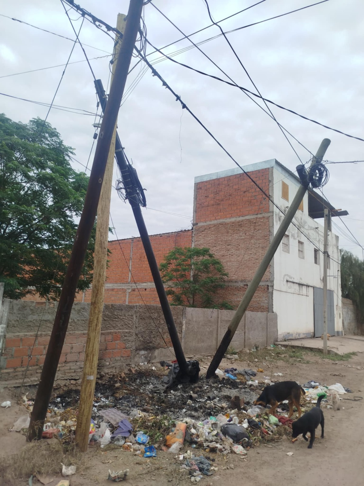 Las columnas de madera ubicadas en Pasaje 446 entre Parías y Juncal están sostenidos por los cables por lo que generan peligro en la zona.