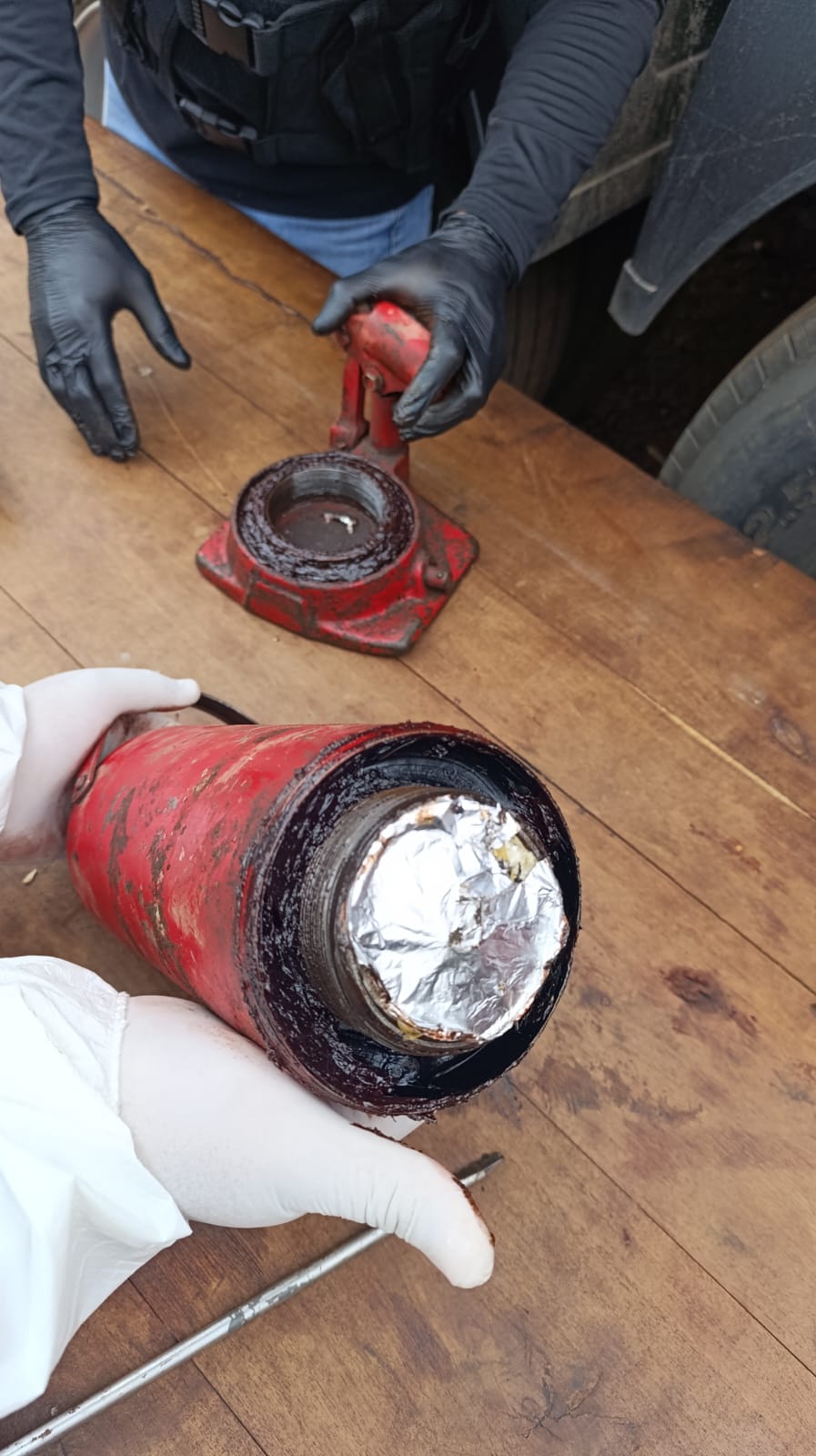Con la autorización del Juzgado Federal N° 2, los gendarmes realizaron la apertura de los gatos hidráulicos y constataron la presencia de una sustancia blancuzca compactada, que tras las pruebas de campo arrojó resultado positivo para cocaína, con un peso total de 5 kilos 815 gramos.