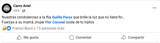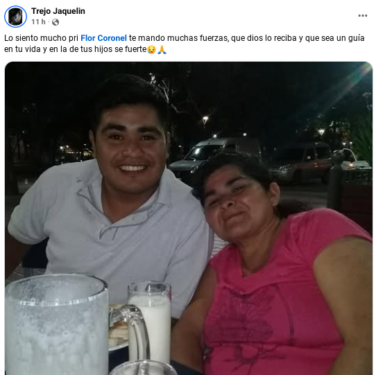 “Lo siento mucho pri Flor Coronel te mando muchas fuerzas, que dios lo reciba y que sea un guía en tu vida y en la de tus hijos se fuerte”, le escribieron a su esposa.