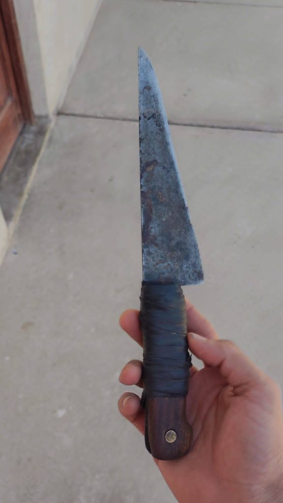 Asimismo, en su posteo la mujer comparte la imagen de un cuchillo que se olvidaron los ladrones al salir del domicilio luego de perpetrar el delito.