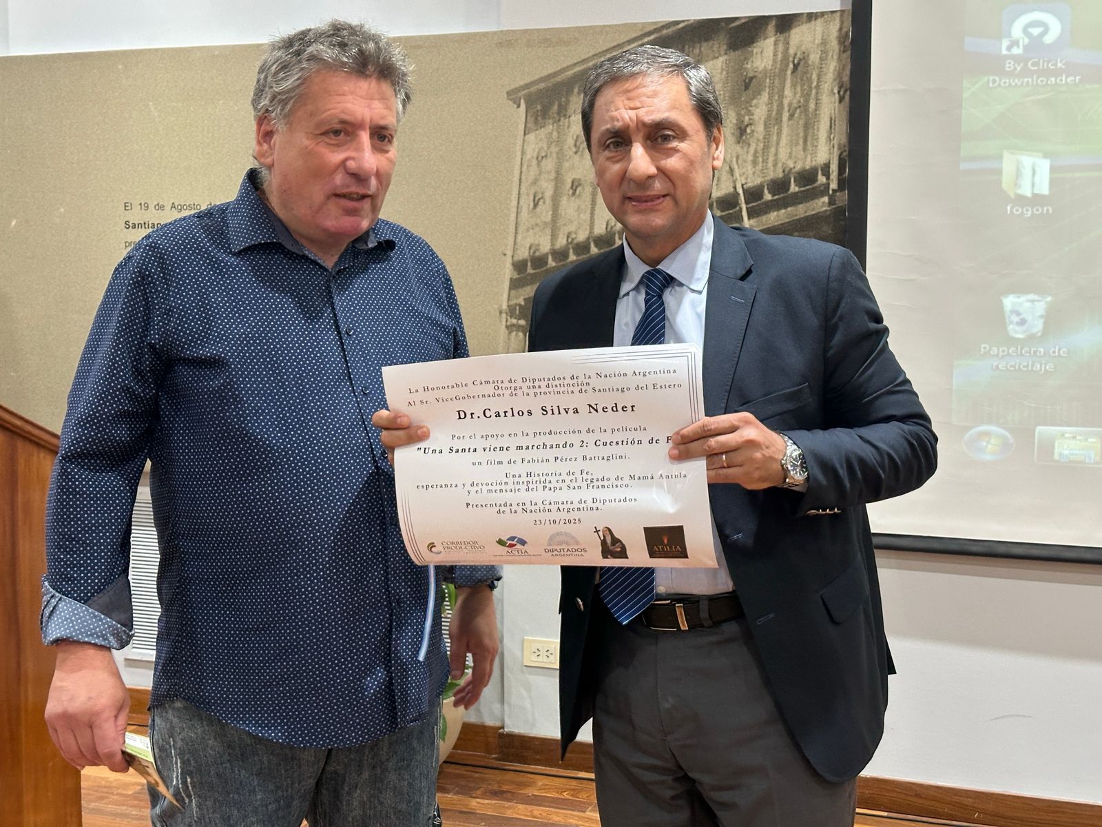 En su mensaje a los asistentes, el vicegobernador Silva Neder subrayó: “Este documental es, sin duda, un aporte crucial para que sigamos conociendo, día a día, a nuestra santa, nuestra Mamá Antula, esa santiagueña y argentina que nos enorgullece. Y el mérito de esta curiosidad, de este compromiso, es de Fabián y su equipo, por haber investigado nuestra fe y a la ‘Madre Antula’.