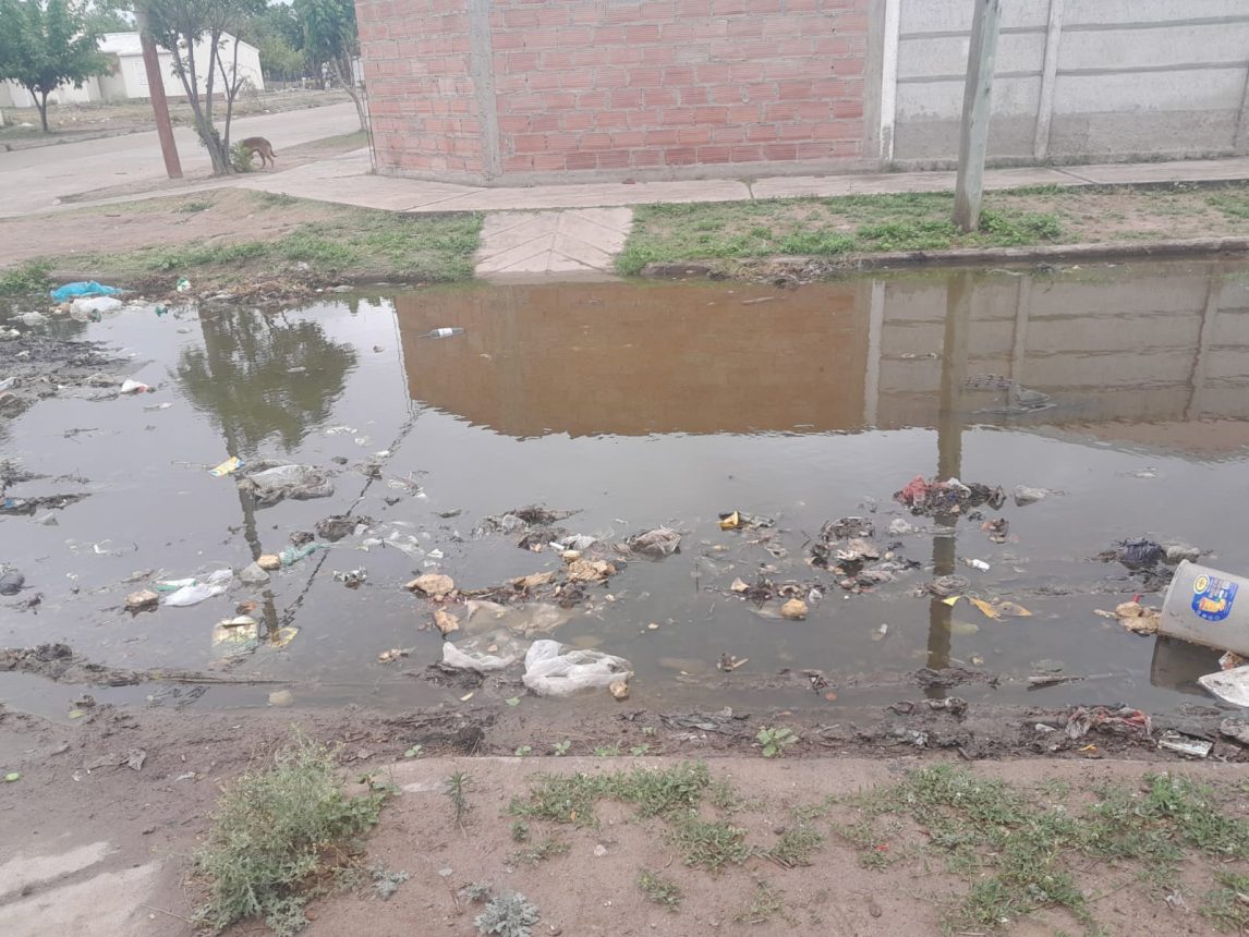 Según relataron a a través de mensajes y fotografías, el sector comprendido entre las manzanas 25 y 27 permanece con la calle anegada, olores nauseabundos y desbordes cloacales que afectan la vida cotidiana de las familias que allí residen.