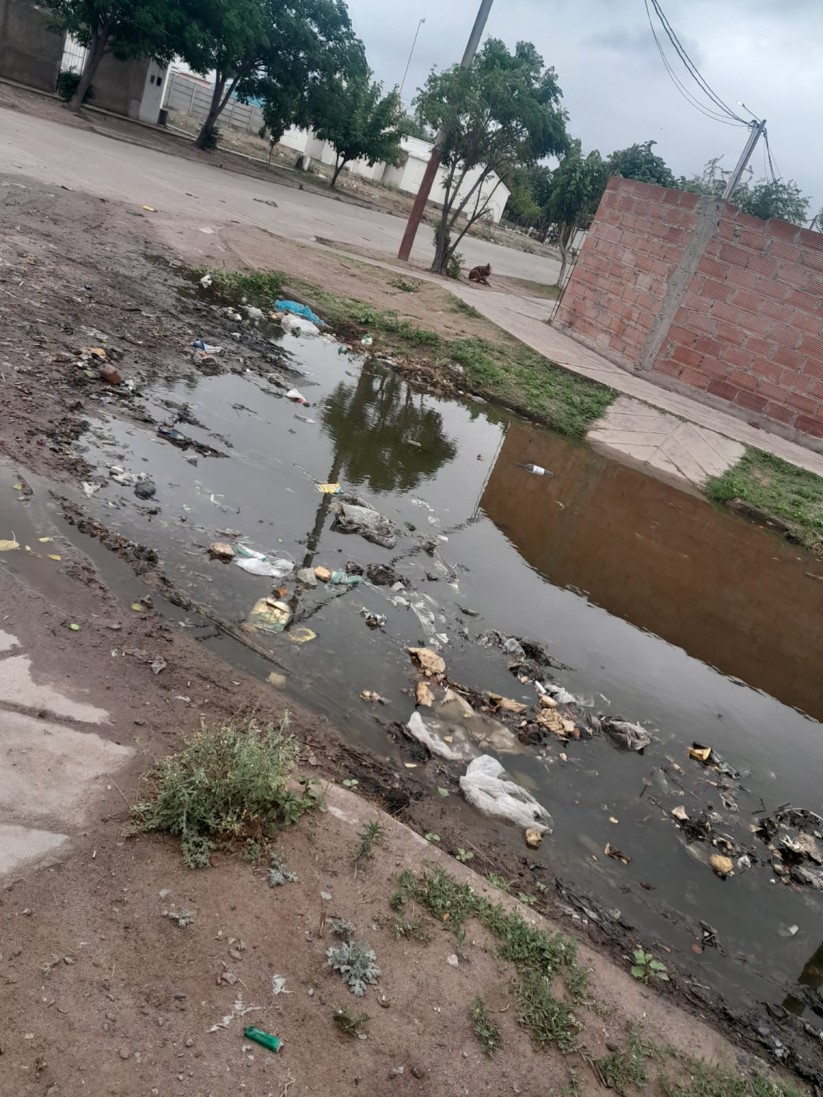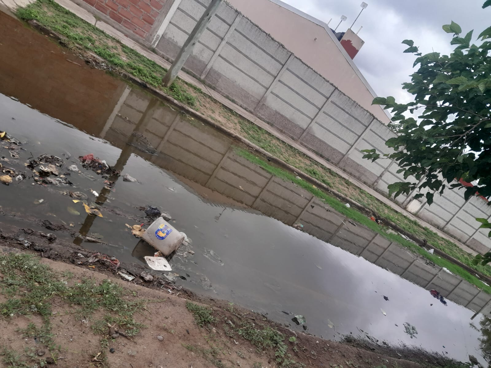 Según relataron a a través de mensajes y fotografías, el sector comprendido entre las manzanas 25 y 27 permanece con la calle anegada, olores nauseabundos y desbordes cloacales que afectan la vida cotidiana de las familias que allí residen.
