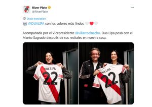 En las horas previas al Superclásico, la incertidumbre sobre la presencia de la artista en La Bombonera se mantuvo hasta último momento. A primera hora del día, la cuenta oficial de River Plate difundió imágenes de Dua Lipa luciendo la camiseta del club, por lo que puede aseverarse que hasta el Súper se jugó en la figura de la cantante. Finalmente acompañada por varios familiares que también se pusieron la Albiceleste, la compositora europea fue vista bailando al ritmo de la hinchada de Boca y grabando hacia las tribunas del estadio xeneize.
