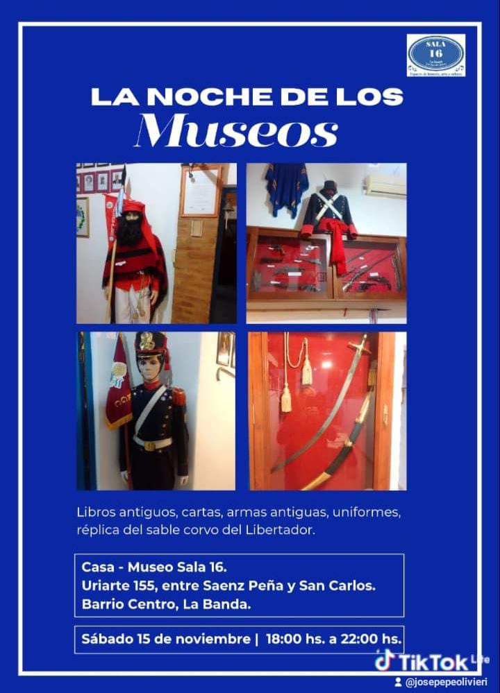 La Asociación Cultural Sanmartiniana de La Banda se plegará al evento “La Noche de los Museos” que se lleva a cabo en distintas ciudades del país este sábado de noviembre, de 18.00 a 22.00.