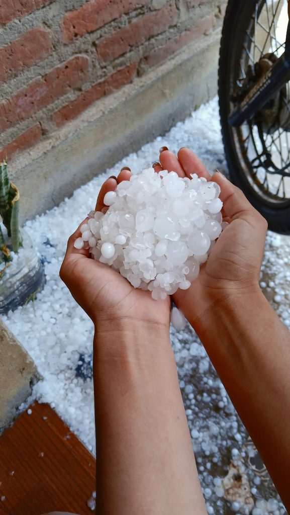 Localidades del interior del departamento Salavina arrancaron la jornada bajo una escandalosa tormenta. Este sábado, el sitio Los Telares Web reportó lluvias, viento y la caída de una gran cantidad de granizo que, en algunas zonas, cubrió de blanco el piso.