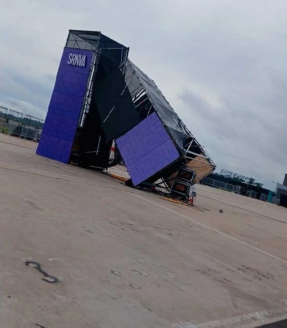Una imponente tormenta se desató en la noche del sábado y destruyó la estructura del escenario principal, donde iban a presentarse artistas de la talla de Luck Ra y La Joaqui. Finalmente, el espacio se derrumbó.