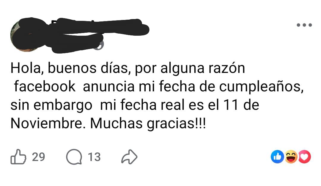 Primero fue uno, luego dos y luego fueron apareciendo uno tras otro con el mismo “error”. “Por alguna razón parece que Facebook cambió mi fecha de nacimiento y me están meta saludar hoy”, escribió uno de los usuarios.