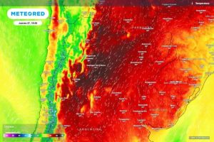 El extenso período de altas temperaturas podría interrumpirse recién hacia el final de la próxima semana. Se prevé el ingreso de un nuevo sistema frontal frío proveniente del sur, que avanzaría primero sobre la Patagonia y luego sobre la región pampeana. En este marco, este frente generaría un cambio en la circulación del viento y podría traer inestabilidad.