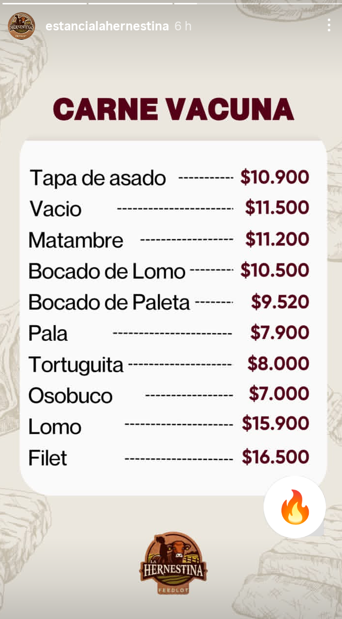 - Tapa de asado: $12.300