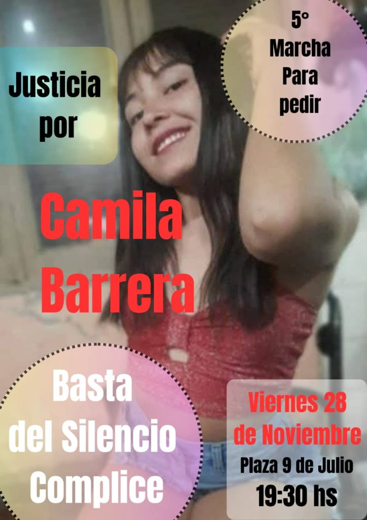 Mañana, a partir de las 19.30, se llevará a cabo la 5° Marcha en reclamo por justicia para Camila Barrera, la jovencita de 17 años, hallada asesinada el 9 de noviembre. Familiares, amigos y quienes deseen sumarse a la movilización, se reunirán en la plaza 9 de Julio de la ciudad de Frías.