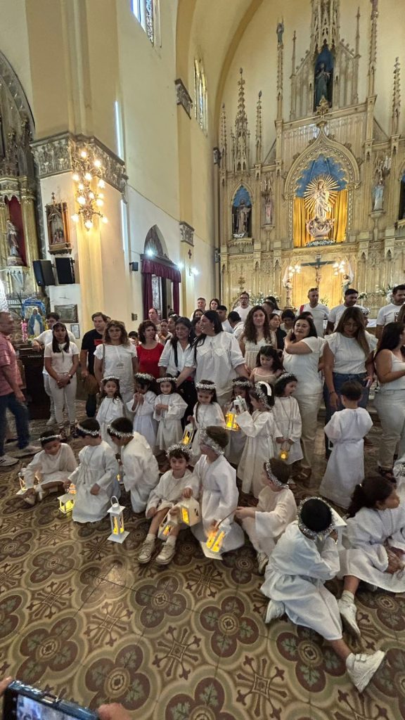 La sala de 4 compartió un momento memorable al que los niños acudieron con atuendos de ángeles y con veleros. Mientras que los docentes, familias e integrantes de la Pastoral, fueron vestidos de blanco para la ocasión.