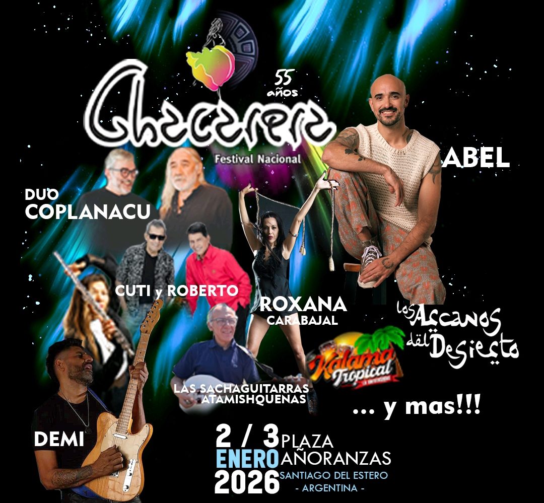 La organización del Festival Nacional de la Chacarera anunció la cartelera oficial para su edición número 55, que se desarrollará el viernes 2 y sábado 3 de enero de 2026 en Plaza Añoranzas. El tradicional encuentro abrirá la temporada de festivales con una programación que combina figuras consagradas, artistas emergentes y homenajes.