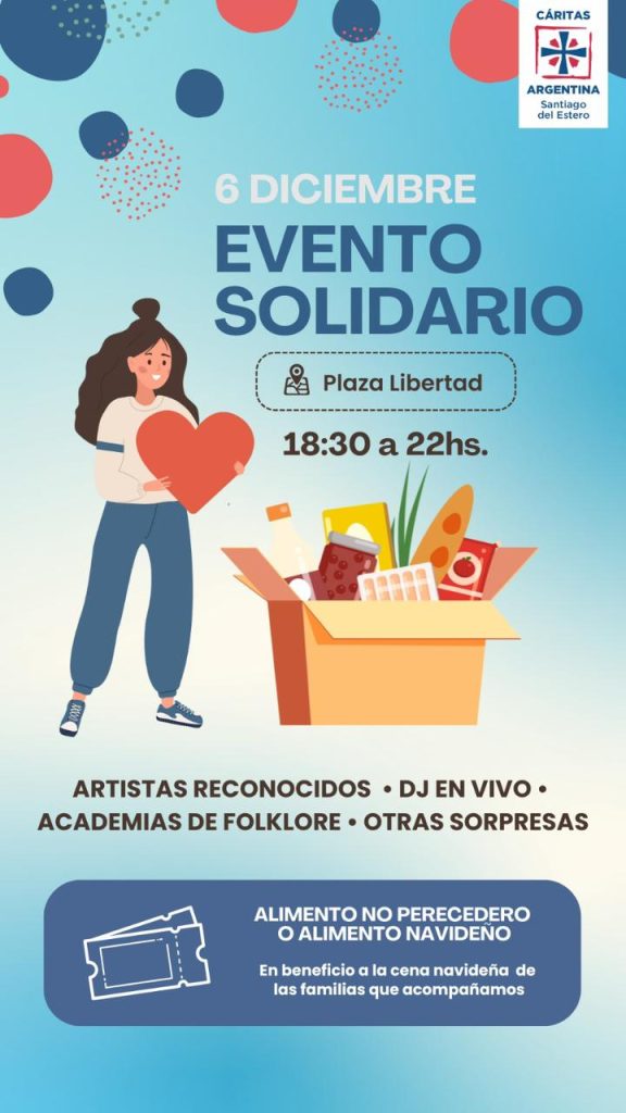 La entrada será un alimento no perecedero o un producto navideño, destinado a las canastas que Cáritas entregará a las familias antes de Navidad.
