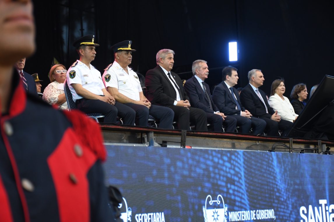 El evento fue presidido por el gobernador Gerardo Zamora, acompañado por el jefe de Gabinete y gobernador electo, Elías Suárez, y contó con la presencia de la presidenta provisional de la Legislatura, Norma Abdala de Matarazzo, ministros, secretarios, legisladores provinciales y nacionales, así como representantes de fuerzas de seguridad extranjeras, incluyendo delegaciones de China y Japón, reforzando el carácter institucional e internacional del acto.