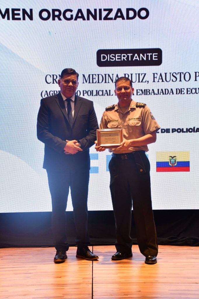 Durante su exposición, titulada “Fenómeno del Crimen Organizado en Ecuador”, el Coronel Medina Ruiz analizó la estructura y evolución de organizaciones criminales transnacionales, rutas del narcotráfico, modalidades de lavado de activos y modos de operación de bandas delictivas. Además, presentó estrategias aplicadas en su país basadas en inteligencia criminal, coordinación interinstitucional, cooperación internacional y prevención social, destacando la importancia del fortalecimiento institucional para anticiparse a amenazas complejas.