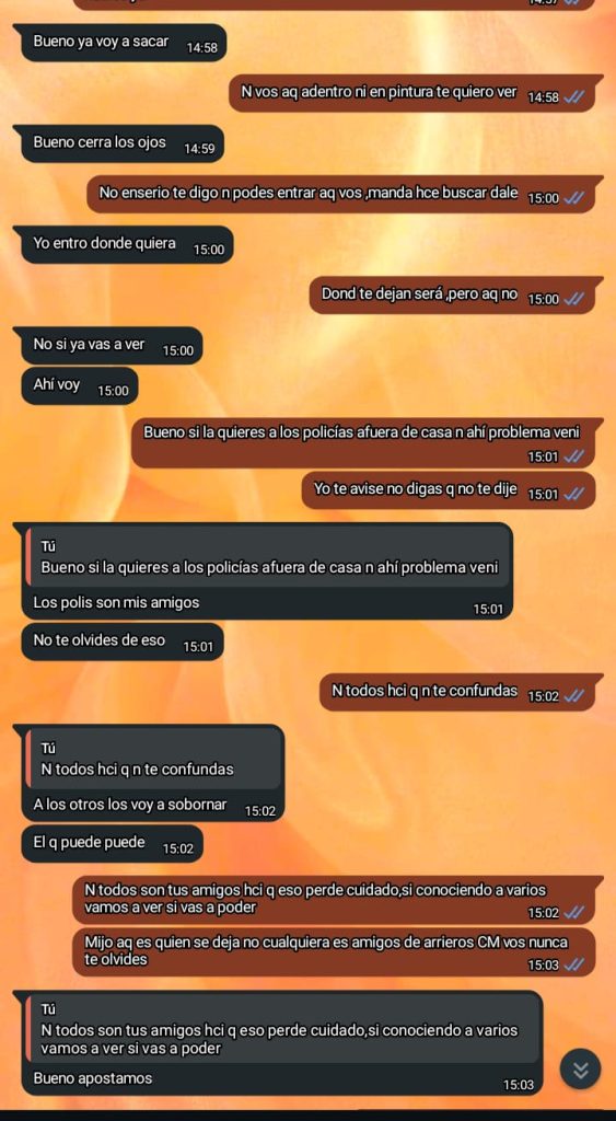 A su vez, aseguró que iba a “coimear” a fiscales, jueces y la policía.