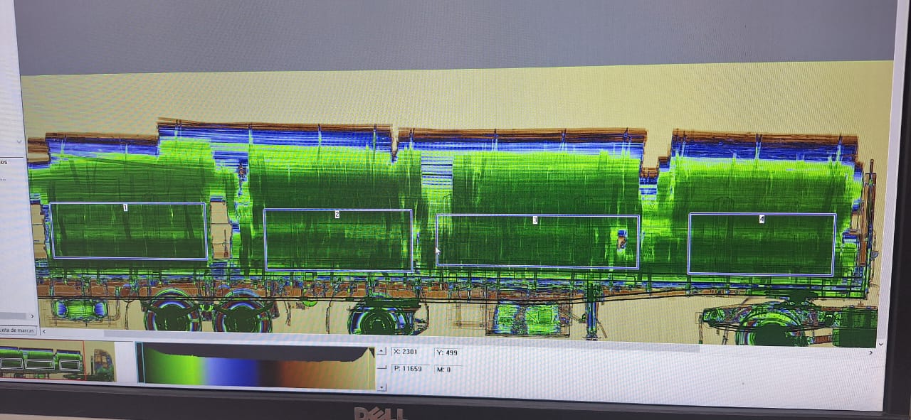 Al acercarse para comenzar la inspección documentológica, los funcionarios vieron a simple vista un gran cargamento de madera. Por cuestiones de rutina, los gendarmes utilizaron el escáner móvil de la Fuerza mediante el cuál visualizaron la presencia paquetes con una densidad y coloración compatibles con sustancias ilícitas entre los tirantes.