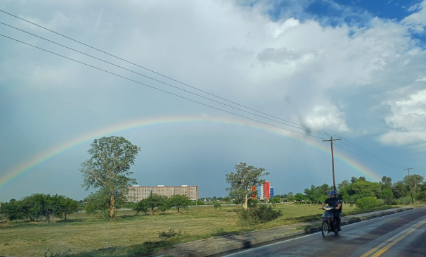Breve lluvia, mucho vapor y un arcoíris que sorprendió a Santiago del Estero
