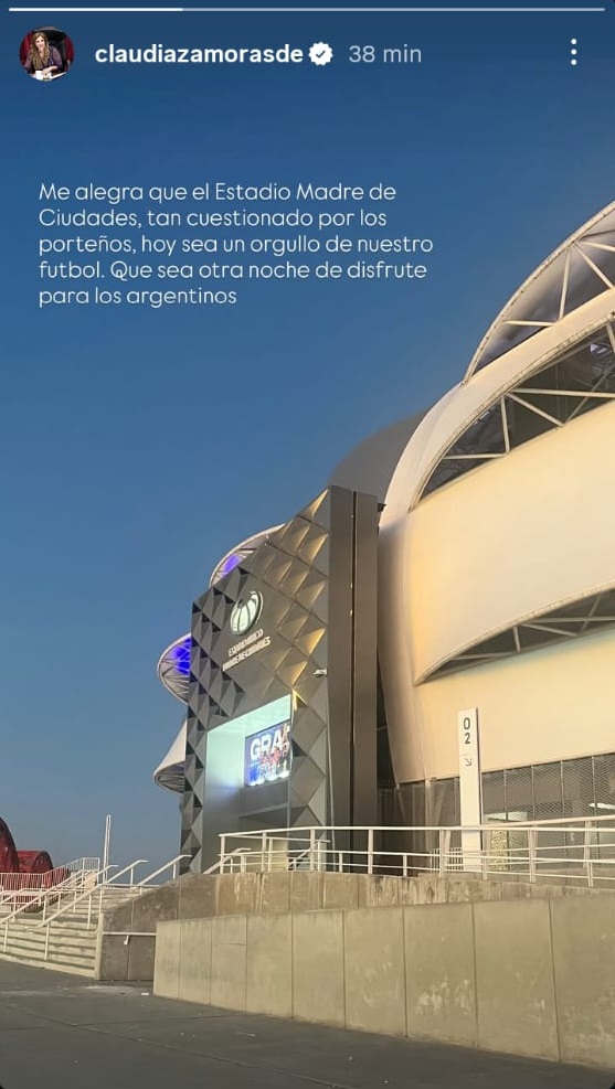 “Me alegra que el Estadio Madre de Ciudades, tan cuestionado por los porteños, hoy sea un orgullo de nuestro fútbol. Qué sea otra noche de disfrute para los argentinos”, anheló la exfuncionaria nacional a través de su cuenta de Instagram, en vísperas del encuentro futbolístico.