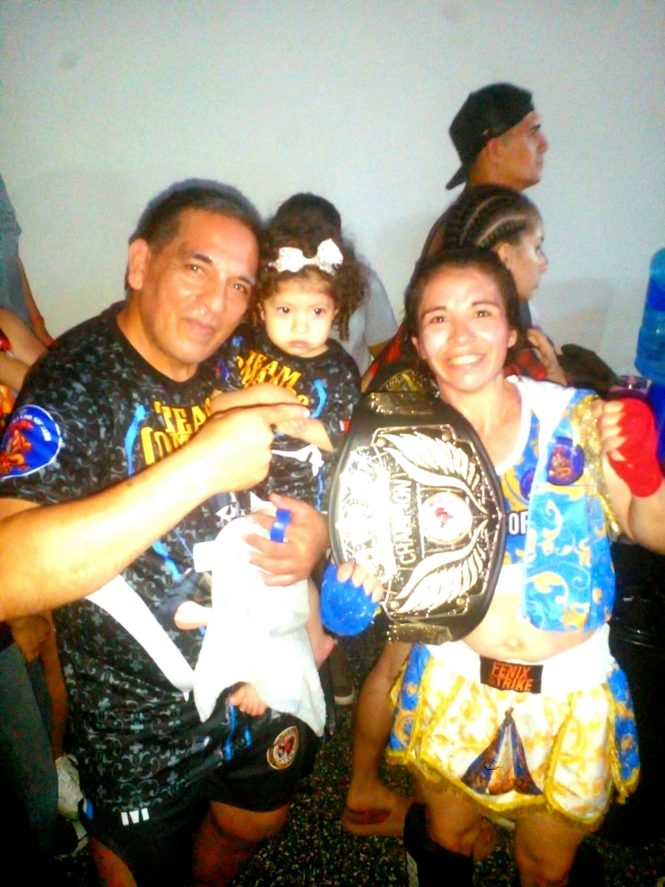 La campeona es competidora de kickboxing y K1, en la categoría semi profesional hasta 50 kg, y forma parte del Team Comando Sicarios, equipo dirigido por el profesor Luis Cáceres, quien acompaña su proceso de entrenamiento y preparación.