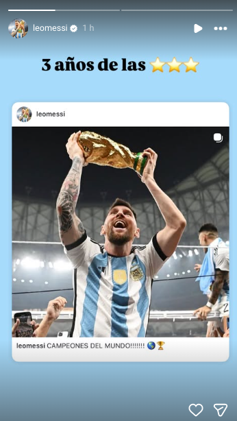 El astro Lionel Messi compartió una historia de Instagram por los tres años de la Selección argentina en el Mundial de Qatar 2022.