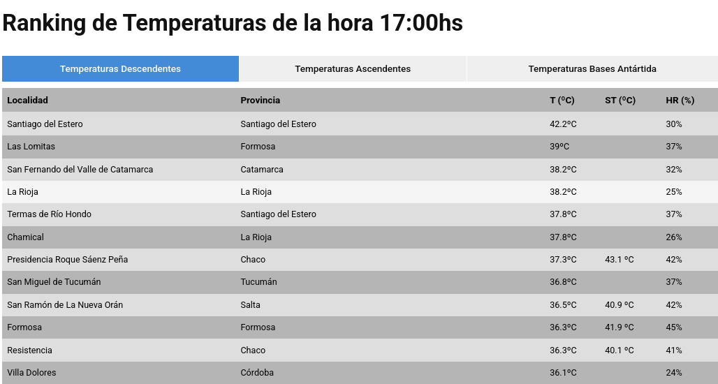 De acuerdo con el reporte del Servicio Meteorológico Nacional, a las 17, la temperatura era de 42° con una humedad del 30% y vientos del norte.