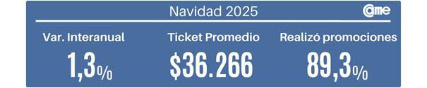 Un informe elaborado por la Cámara Argentina de la Mediana Empresa (CAME) da cuenta del crecimiento de las ventas minoristas en esta Navidad, al ritmo de las promociones y descuentos que implementaron. No obstante, el consumo reflejó una marcada austeridad y dependencia del crédito debido al nivel de endeudamiento y la retracción del poder adquisitivo de los hogares.