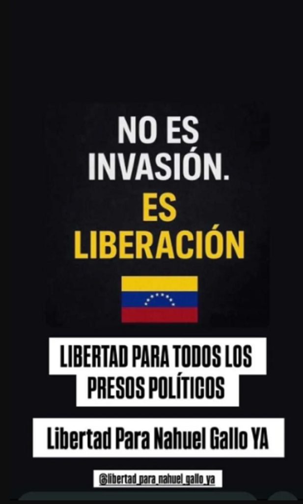 “Libertad para todos los presos políticos. Libertad para Nahuel Gallo ya”, escribió María, la esposa de Nahuel Gallo, el gendarme detenido por el régimen de Venezuela. Esto tras conocerse la captura de Nicolás Maduro por parte de Estados Unidos.