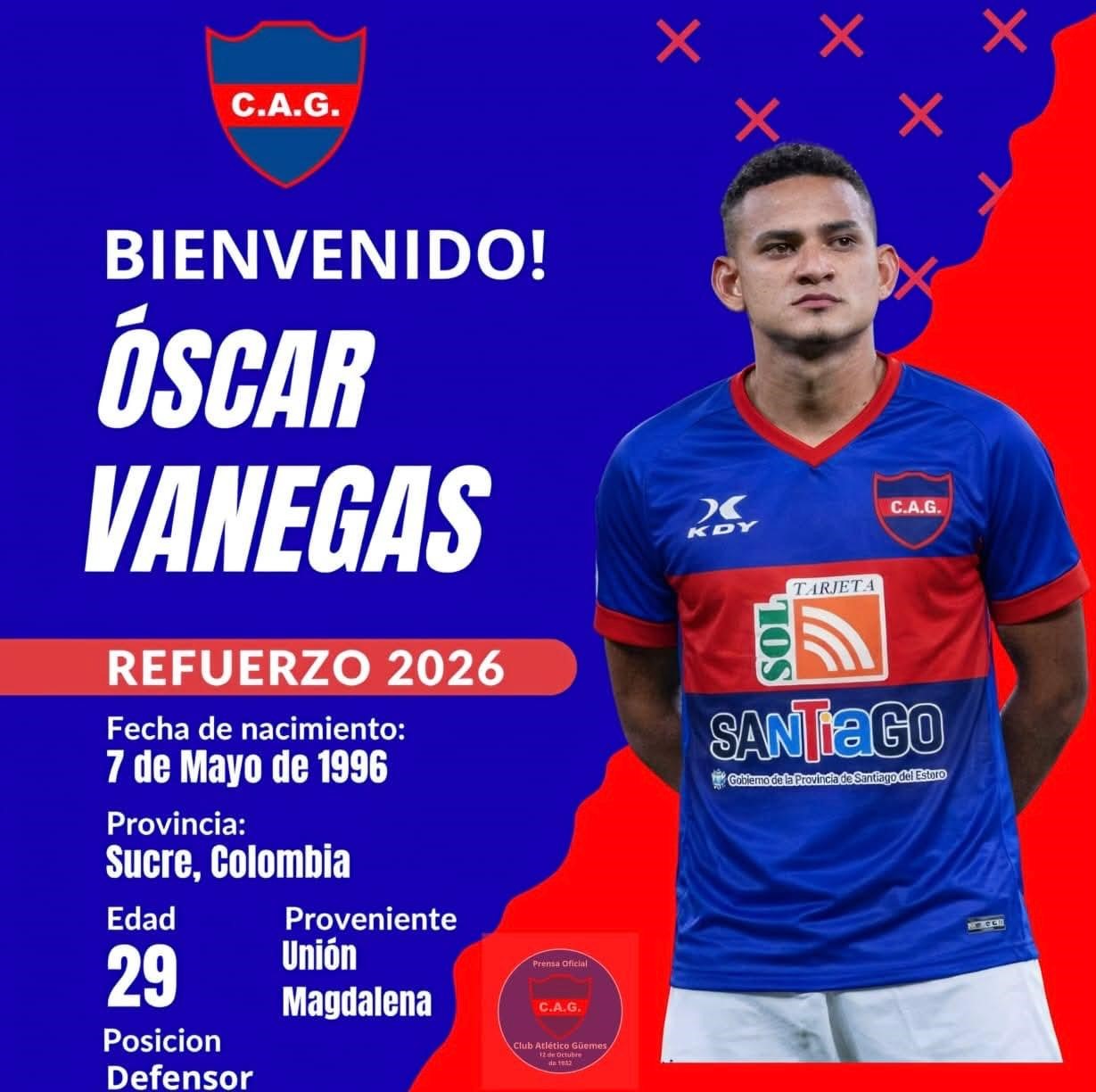 El Club Atlético Güemes continúa reforzando su plantel de cara a la temporada 2026 y confirmó la incorporación del defensor colombiano Oscar Venegas Zúñiga.