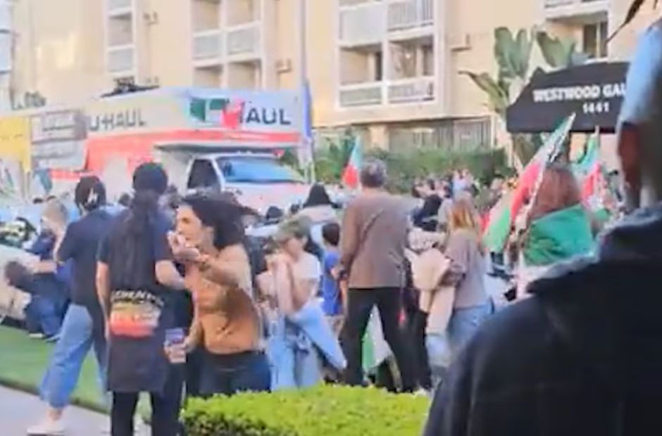 El incidente ocurrió en el barrio de Westwood durante una manifestación en solidaridad con las víctimas de la represión en Teherán. Los manifestantes reaccionaron violentamente contra el vehículo, que portaba consignas políticas.