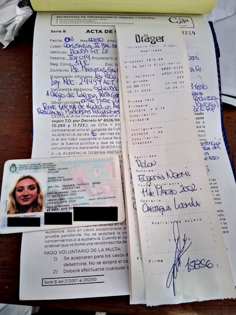 Al ser sometida al test de alcoholemia, se constató que presentaba 1,89 gramos de alcohol por litro de sangre. La ley provincial de alcohol cero prevé una inhabilitación de dos años para quienes superan los 1,50 gramos, pero en este caso la falta fue considerada grave debido a que la conductora no contaba con licencia habilitante al momento del hecho.