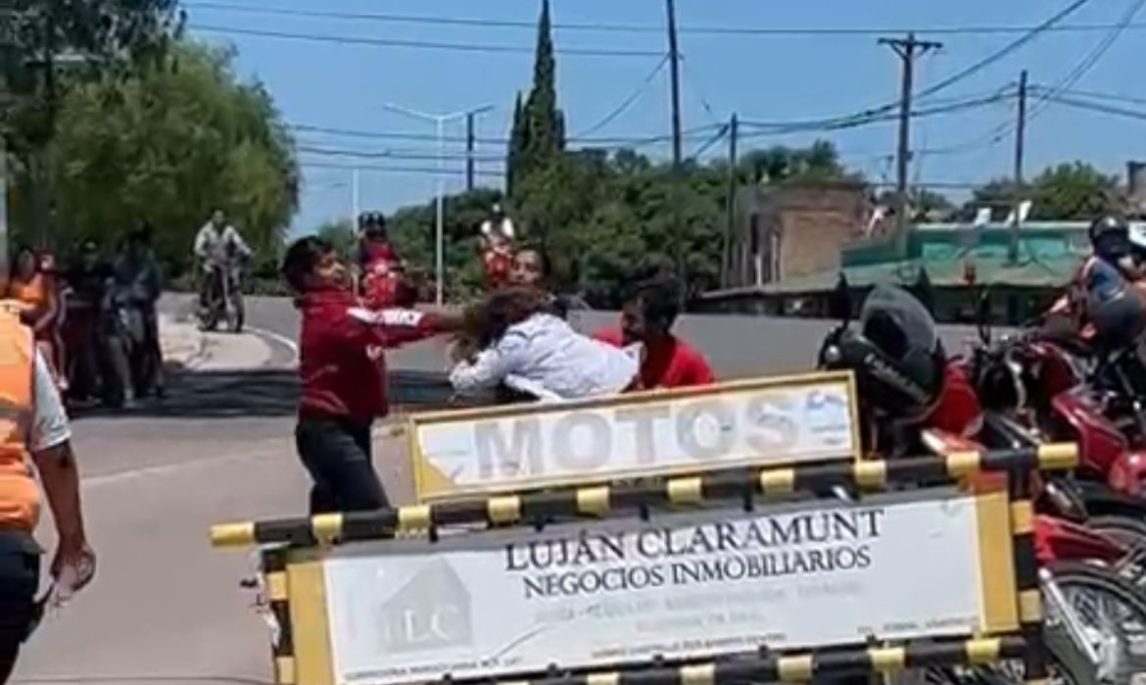 La violencia del intercambio fue tal que una de las participantes cayó pesadamente al suelo, impactando peligrosamente cerca de los hierros de un estacionamiento de motos. A pesar de la gravedad de la situación y de ocurrir ante la mirada atónita de transeúntes, la agresión se prolongó durante varios segundos antes de que la situación lograra disiparse. El incidente ocurrió en uno de los puntos más transitados de la ciudad, frente a la terminal, en un horario de alta circulación escolar y comercial.