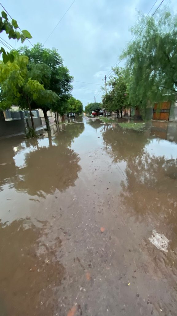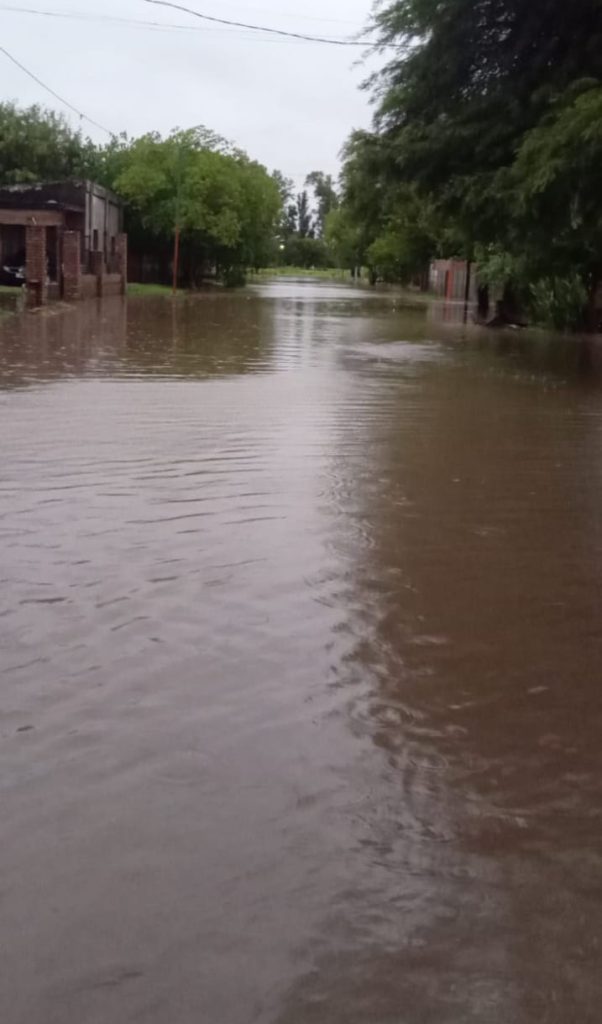 Una situación similar se vive en la ciudad de Beltrán, donde vecinos enviaron fotografías que muestran calles completamente cubiertas por el agua, dificultando el tránsito y el acceso a los hogares. “Estamos inundados”, resumieron, junto a postales que reflejan el alcance de la tormenta.