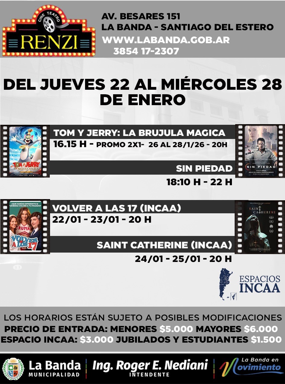 En paralelo, el Cine Teatro Municipal Renzi continúa ofreciendo una atractiva programación de películas nacionales e internacionales en el marco de las vacaciones de verano. Desde el 22 al 28 de enero, la cartelera se renovará con destacados estrenos.