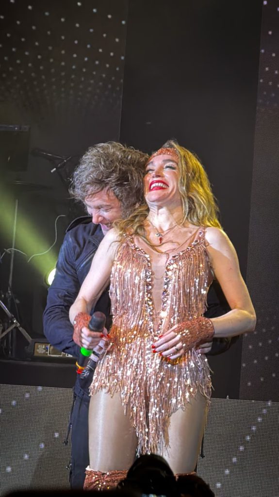 Lejos de limitarse a observar desde la platea, el mandatario subió al escenario, compartió micrófono con la artista y cantaron juntos un fragmento de “El Rock del Gato”, clásico de Ratones Paranoicos. El momento fue acompañado por aplausos y gritos del público, mientras decenas de celulares registraban la escena que rápidamente se viralizó en redes sociales.