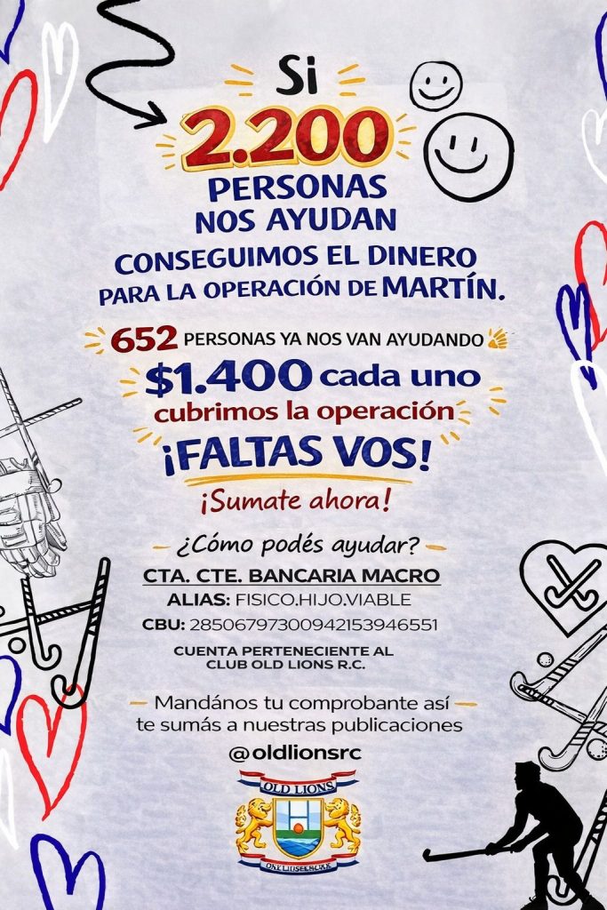 Desde Old Lions remarcan que tanto el rugby como el hockey son deportes de contacto, donde las lesiones graves pueden aparecer de forma inesperada. “Muchas veces uno no cuenta con el dinero en el momento y la urgencia es inmediata. Por eso decimos que hoy todos somos Martín, hoy por mí, mañana por vos”, expresó Villa.