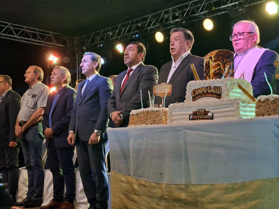 Campo Gallo celebró su 128° aniversario con una gran fiesta popular en el predio del ex ferrocarril. Además inauguraron un boulevard en homenaje a Huguito Flores, nacido en esa ciudad. Las celebraciones fueron presididas por el intendente, Amado Tomás “Bochi” Chamorro, el vicegobernador, Carlos Silva Neder, entre otras figuras.